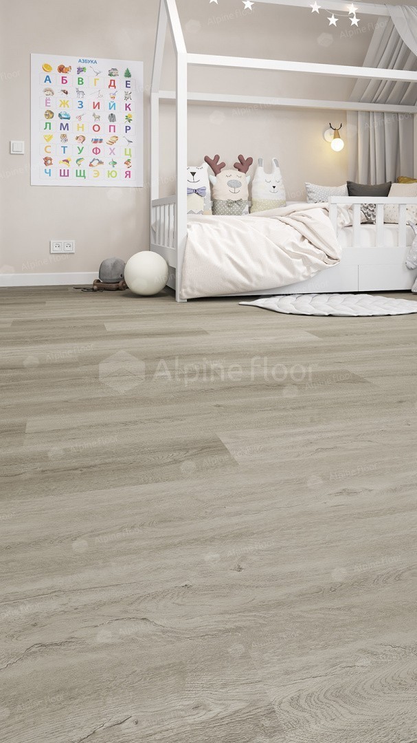 Кварц-виниловая плитка от Alpine Floor – это безопасный, водостойкий и теплопроводимый вид напольного покрытия с замковым соединением. Такая плитка может похвастаться прекрасными техническими характеристиками и естественной текстурой, повторяющей поверхность натурального дерева.