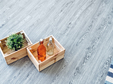 Кроме того, что отделочный материал имеет привлекательный вид, он еще и нивелирует основной недостаток древесины. Главная особенность плитки – абсолютная водонепроницаемость. Пол отлично моется, с поверхности легко убрать грязь и следы от фломастеров. В отличие от кафельной плитки, кварц-винил теплый и безопасный. Даже разлитая вода не делает его скользким.
